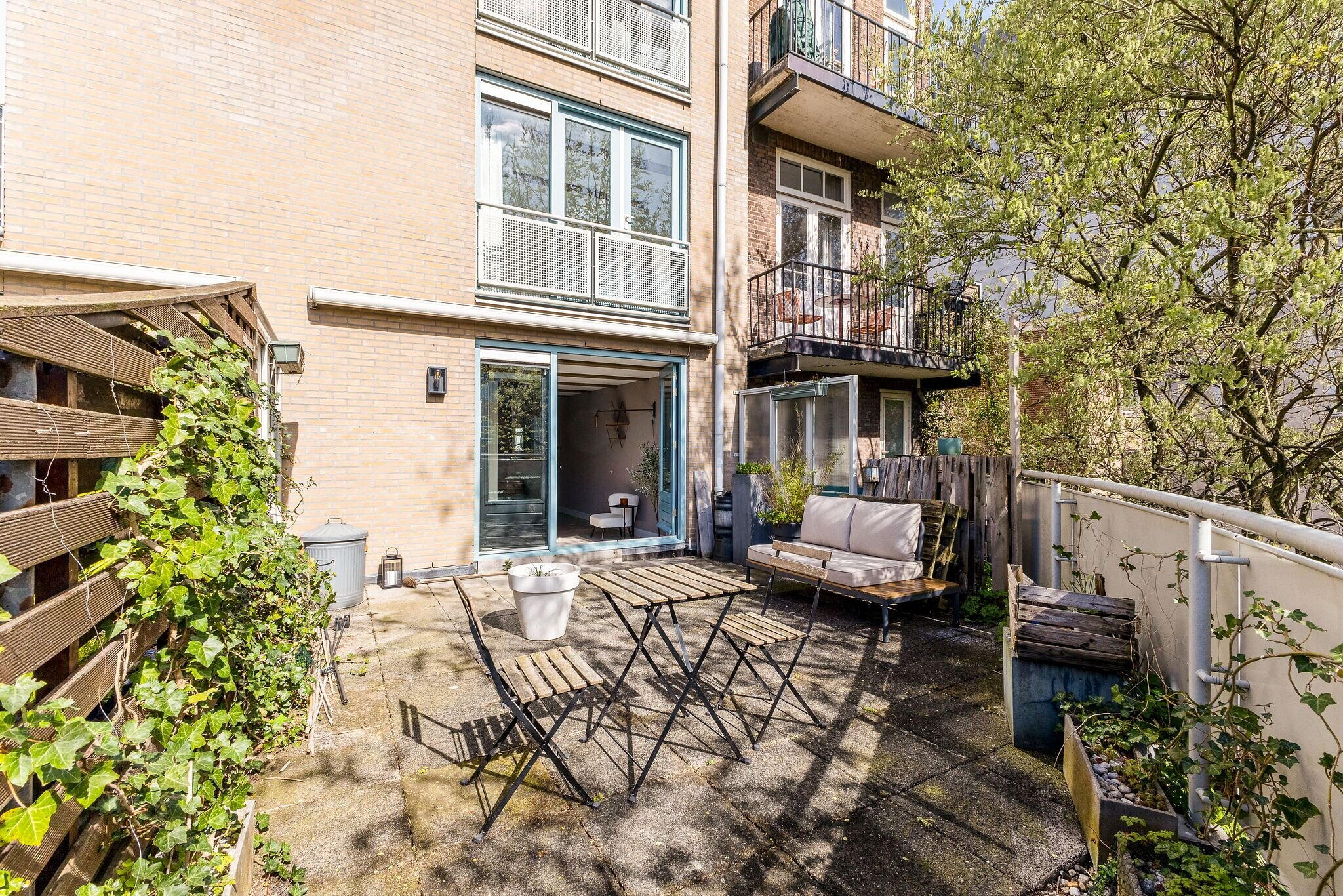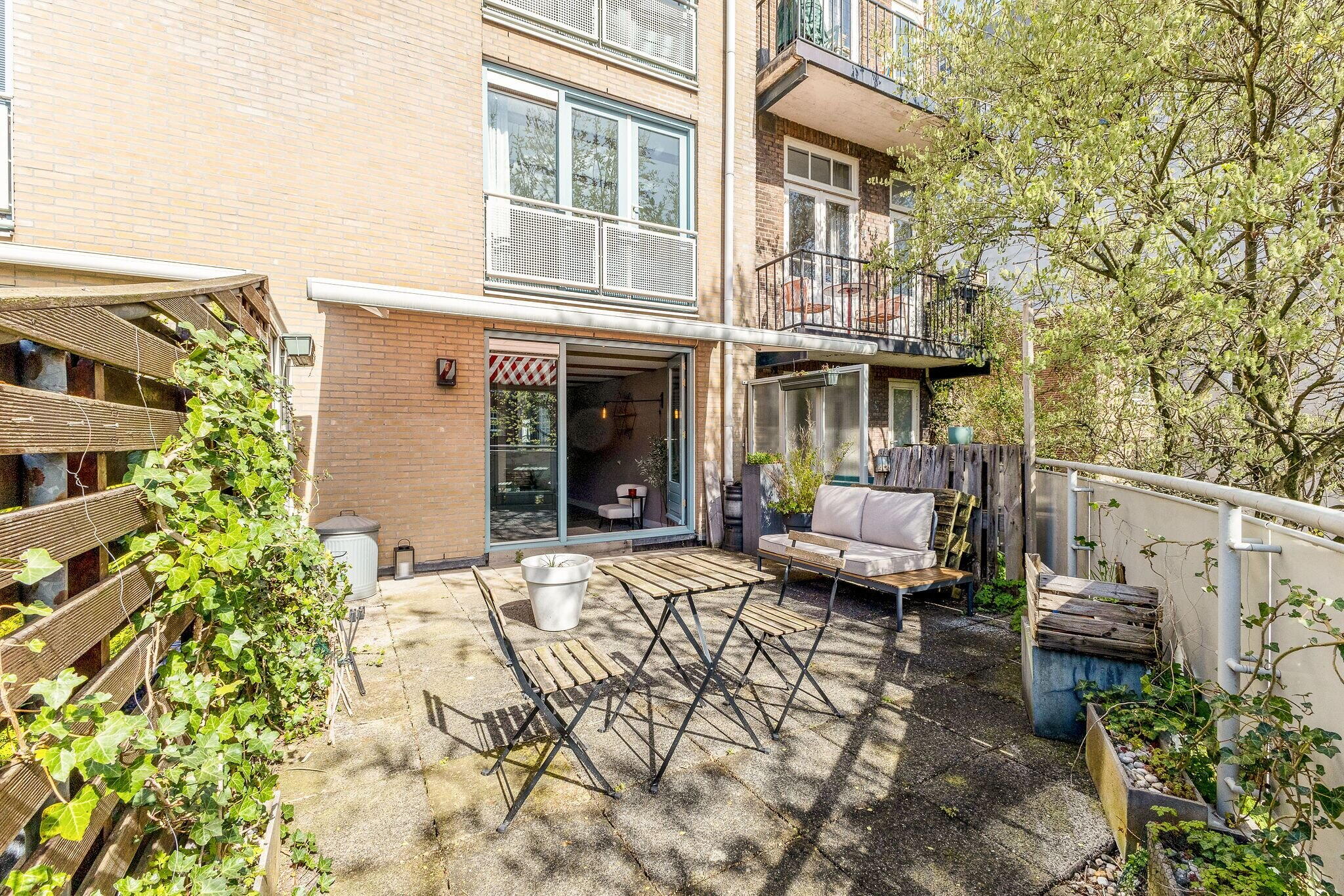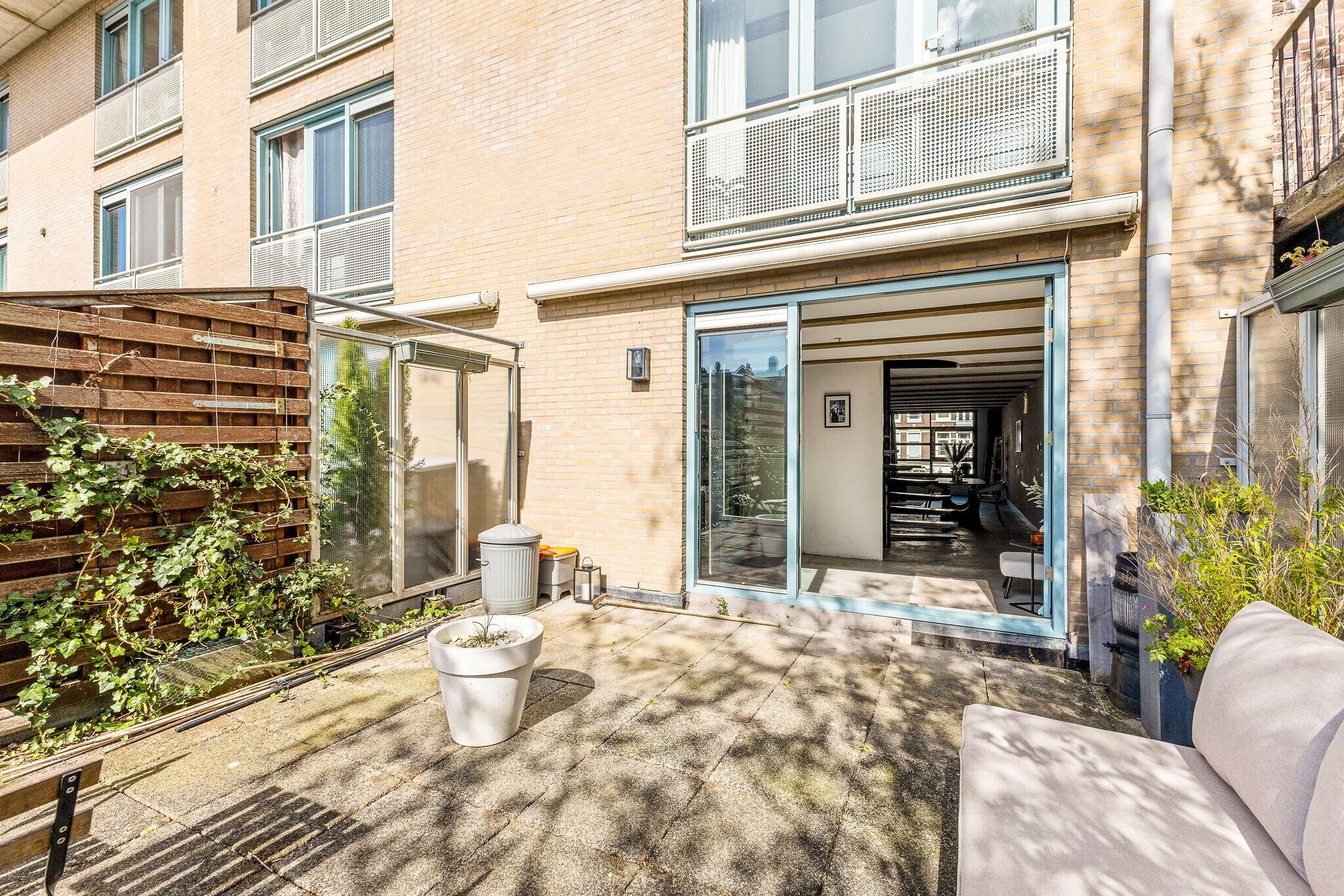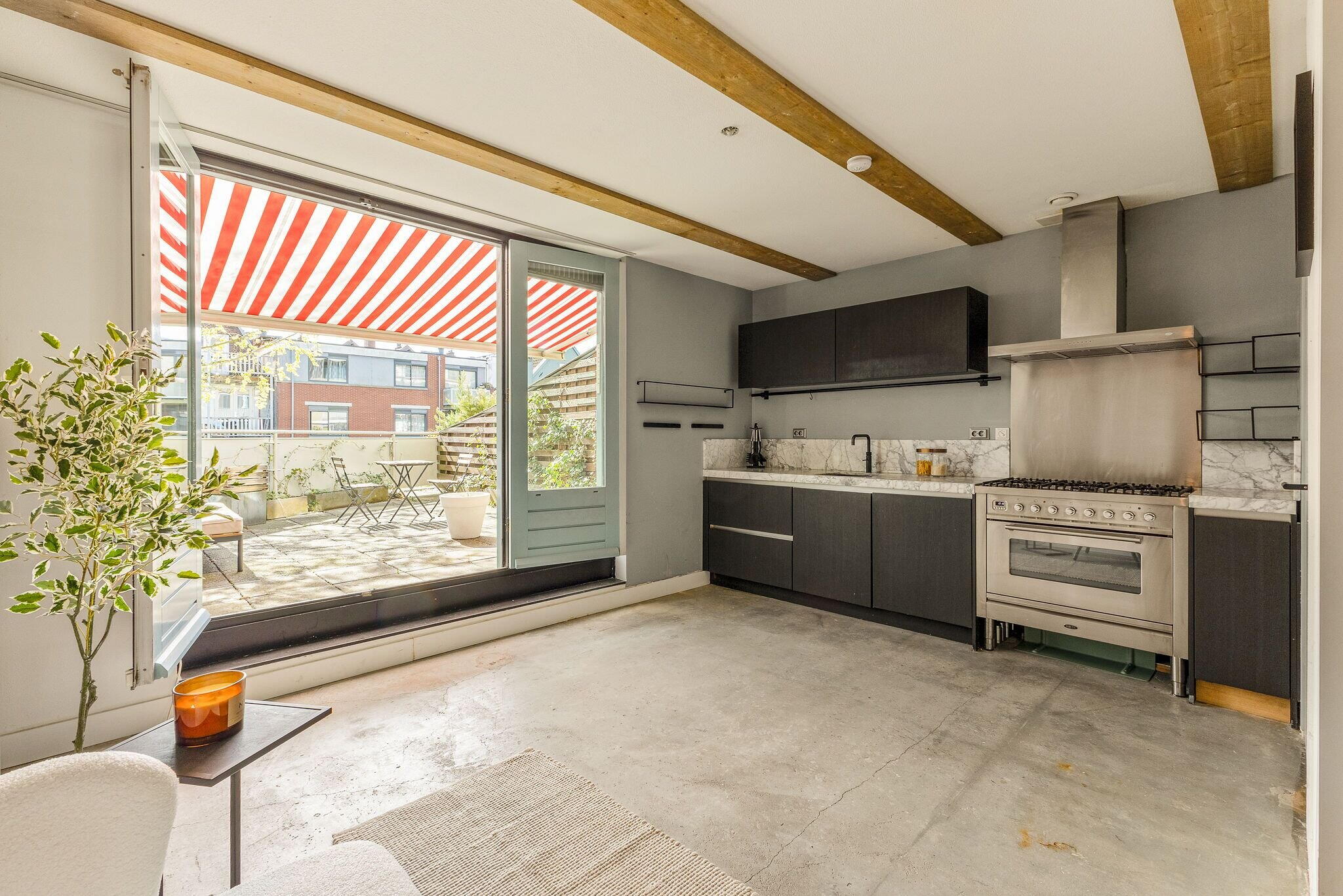 Aan de achterzijde bevindt zich de moderne keuken uit 2018, voorzien van diverse inbouwapparatuur zoals een oven, zespits gasfornuis, vaatwasser en een Quooker-kraan. Vanuit de keuken stap je direct het ruime dakterras van circa 26 m² op. Het terras beschikt over brede elektrische zonwering.