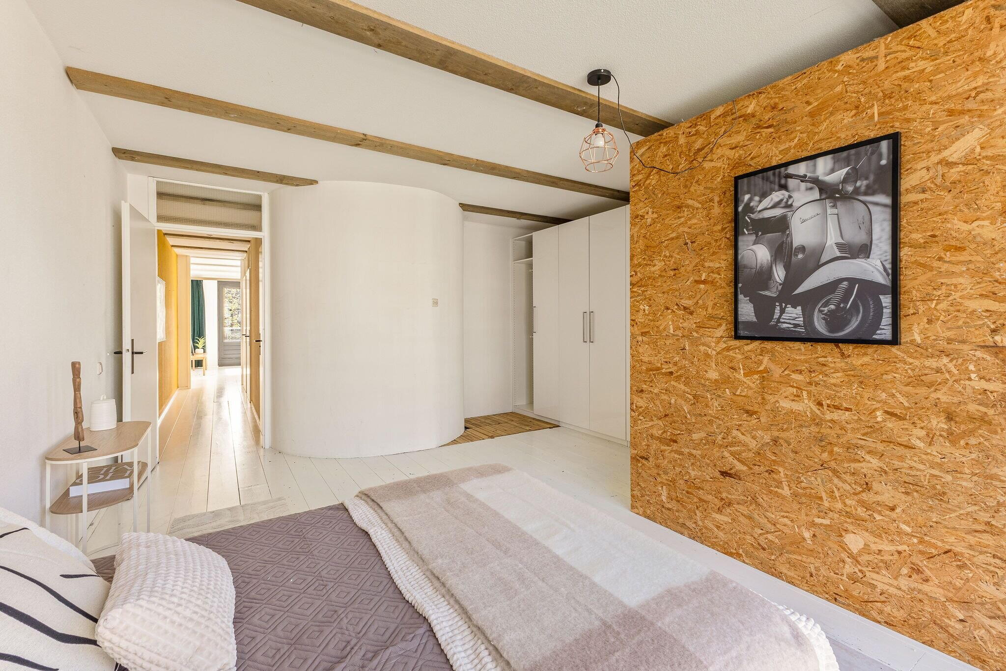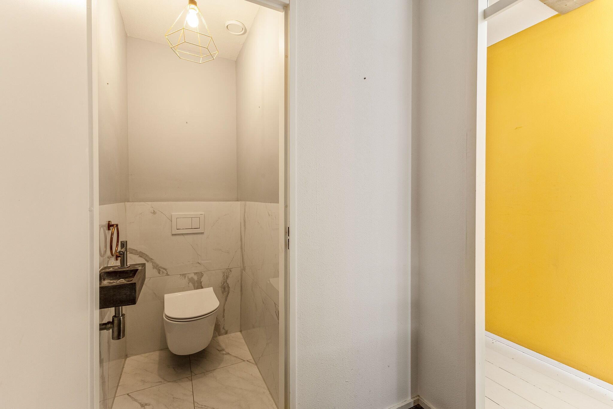 Via een brede wenteltrap bereik je de tweede verdieping. Hier vind je een separaat toilet en een aparte ruimte voor de wasmachine en droger.