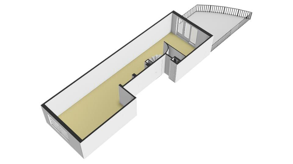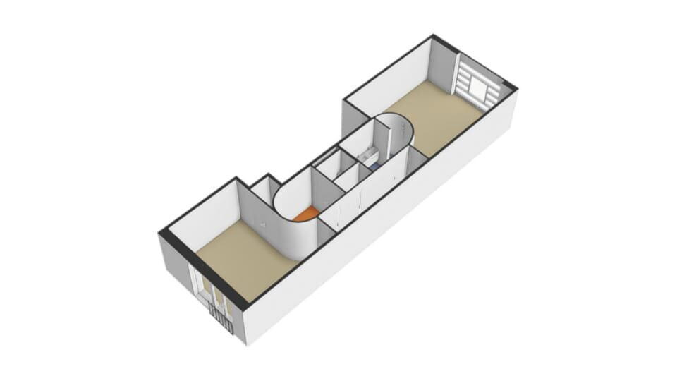 At the front is the bright living room overlooking the lively Rozengracht. The current concrete floor gives the space a modern, industrial look and provides a great base to finish the home to your own taste.